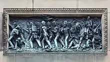 Латунная доска в южной части пьедестала — с рельефным изображением окончания в битвы при Ватерлоо, на рельефах восточной и западной части колонны изображены другие победные сражения герцога.