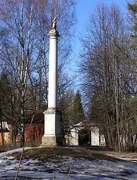 К середине следующего столетия колонна уже находилась в достаточно ветхом состоянии. В 1858—1860 годах она была «по негодности уничтожена» и заменена новой, сделанной по образцу ранее существовавшей. Фигура орла, снятая с прежнего монумента, вновь была установлена на вершине колонны[8][9]. Это изваяние было разбито либо в годы Гражданской войны[9], либо в период Великой Отечественной войны[6].