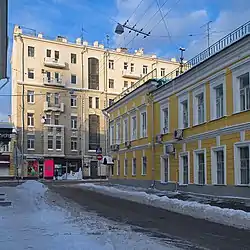 - № 5. стр. 2 — главный дом (1901; 1940-е)[1]. В 1920-х — начале 1930-х годов в доме размещалось представительство Украинской ССР; затем — Комитет по высшему техническому образованию при ЦИК СССР, где в 1932—1936 годах работал Г. М. Кржижановский. Позднее вплоть до 1990-х годов дом занимали Московский городской комитет ВЛКСМ[3] и Московский областной комитет ВЛКСМ. На доме установлены две памятные доски: мраморная — Зое Космодемьянской, которой здесь была вручена путёвка на фронт; бронзовая — с барельефным портретом Г. М. Кржижановского.