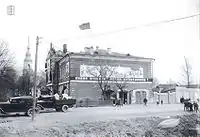 | Железнодорожный вокзал в Колпине. Фото начала 1890-х годов | Приют Св. Николая Чудотворца (ныне Школа искусств им. П. И. Чайковского на Комсомольском канале). Фото 1900-х годов | Вид с собора Святой Троицы на Никольскую улицу (ныне Красная улица). Второй дом за мостом — кабак (в советское время — Районный дом пионеров, затем Муниципальный совет города). Вдали в центре — финская деревня Мокколово (ныне Парк Культуры и отдыха). Фото 1910-х годов | Вид на Царскосельский проспект (ныне проспект Ленина) с башни Заводоуправления. Справа — Городская больница, Слева — Морское собрание, вдали слева церковь Вознесения Господня. Фото 1914 года |