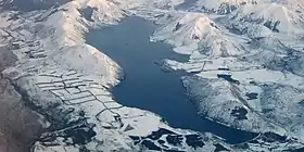 ![]() Вид на озеро с самолёта зимой 2011 года. | |