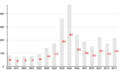 Согласно подворной переписи 1882 года в селе проживали 15 семей, число жителей: 41 м. п., 36 ж. п., лютеране: 9 м. п., 6 ж. п., разряд крестьян — собственники, а также пришлого населения 6 семей, в них: 10 м. п., 17 ж. п., лютеране: 6 м. п., 12 ж. п.[29][36].