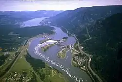 В 1960-е годы США и Канада подписали Договор о реке Колумбия, положения которого фокусировались на обеспечении контроля над наводнениями и максимизации производства электроэнергии в нижнем течении реки[83]. Канада соглашалась со строительством дамб и созданием водохранилищ, а США — с поставками электроэнергии в Канаду. Канадские обязательства вылились в постройку трёх дамб (2 на Колумбии и 1 на реке Дункан), последняя из которых была завершена в 1973 году[84].