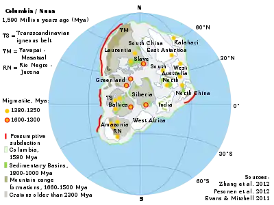 | Колумбия 1,8—1,3 млрд лет назад | |