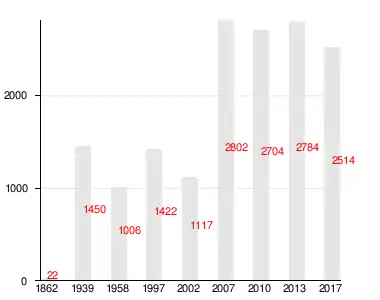 | 1862 | 1997[16] | 2002 | 2007[17] | 2010[18] | 2013[19] | 2017[20] |