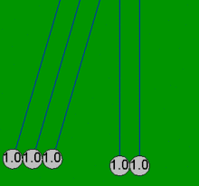 При отклонении и последующем возврате к изначальному положению первого шарика данной системы его энергия и импульс передадутся без изменения через три средних шарика последнему, который приобретёт ту же скорость и поднимется на ту же высоту. Он, в свою очередь, передаст импульс и энергию по цепочке снова первому шарику. Крайние маятники будут колебаться, а промежуточные — оставаться неподвижными. Из-за потерь механической энергии вследствие работы сил трения и упругости колебания маятников затухают, так как в реальных механических системах всегда действуют диссипативные силы.