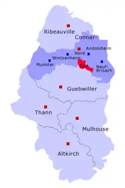 | Включает коммун | 2 (север Кольмара + Сент-Круа-ан-Плен) |