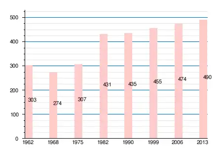 | 1962 | 1968 | 1975 | 1982 | 1990 | 1999 | 2006 | 2008 | 2011 | 2012 | 2013 |