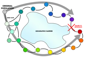 Согласно определению, данному одним из основоположников биологической концепции вида американским биологом Эрнстом Майром, биологический вид представляет собой «группу фактически или потенциально скрещивающихся естественных популяций, которая физиологически изолирована от других подобных групп».[3] В целом данное определение справедливо для подавляющего большинства организмов, однако в природе встречаются животные, которые в процессе расселения создавали всё новые и новые формы (или подвиды), которые в зонах интерградации (местах контакта) свободно скрещивались между собой. Расселение происходило в различных направлениях, и в конце концов разные подвиды вновь встречались между собой, однако зону интерградации уже не образовывали, а вели себя как самостоятельные виды. Ниже даны примеры кольцевых видов.
