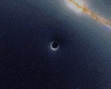 Справа представлено изображение по данным моделирования прохождения чёрной дыры Шварцшильда в плоскости Млечного Пути между нами и центром Галактики. Первое кольцо Эйнштейна является очень сильно деформированным участком изображения и показывает галактический диск. При увеличении видна серия из 4 дополнительных колец с уменьшающейся шириной по мере приближения к тени чёрной дыры. Эти кольца также представляют собой изображения диска Галактики. Первое и третье кольцо соответствуют точкам за чёрной дырой (с точки зрения наблюдателя) и соответствуют яркой жёлтой области диска Галактики (ближе к центру), а второе и четвёртое кольцо соответствуют изображениям объектов за наблюдателем, кажущихся более голубыми из-за меньшей толщины галактического диска.