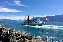 Швейцария имеет большой флот колёсных пароходов, большая часть которых — салонные пароходы, построенные компанией Sulzer в Винтертуре или Escher-Wyss в Цюрихе. Есть пять действующих и один недействующий на озере Люцерн, два на Цюрихском озере и по одному на озёрах Бриенц, Тун и Боденском озере. Швейцарская компания CGN управляет несколькими колёсными пароходами на Женевском озере. Их парк включает три переоборудованных в дизель-электроэнергию в 1960-х годах и пять паровых судов. Один из них, Montreux, был переоборудован в 2000 году с дизельного двигателя на совершенно новый паровой двигатель. Это первая в мире паровая машина с дистанционным электронным управлением, эксплуатационные расходы которой сопоставимы с эксплуатационными расходами современных дизелей, при этом загрязнение воздуха сокращается на 90 процентов.[43]
