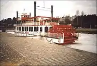 Флот колёсных пароходов на реке Эльба (известный как «Белый флот»), Германия, является старейшим и крупнейшим в мире, обслуживая около 700 000 пассажиров в год.[32] Построенный в 1913 году Goethe был последним колёсным пароходом на реке Рейн.[33] Ранее самый большой в мире колёсный пароход с боковым колесом с двухцилиндровым паровым двигателем мощностью 700 л. с. (520 кВт), длиной 83 м (272 фута) и высотой над водой 9,2 м (30 футов), Goethe был преобразован в дизель-гидравлическую зимой 2008/09 года.