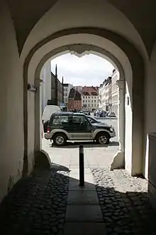 Гранитные или металлические столбы, вкопанные по углам обычной въездной арки — это колёсоотбойные тумбы, предназначенные для защиты углов зданий от ударов колёс проезжающими экипажами. Встречается название приворотные столбы. В основном они простой цилиндрической формы, 30—40 см в диаметре и полтора метра высотой, примерно на треть вкапывались в землю. Такие тумбы ставились парами снаружи и внутри арок, но не только. Колёсоотбойники — примета того времени, когда основным транспортом были конные экипажи, начиная от кареты и кончая простой крестьянской телегой. Чтобы предотвратить соприкосновение со ступицей тумбы имеют отклонение от вертикальной оси.