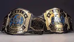 ![]() Дизайн поясов командного чемпиона мира AEW (с 2019 года по настоящее время) | |