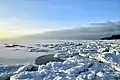 Лёд у берега на закате