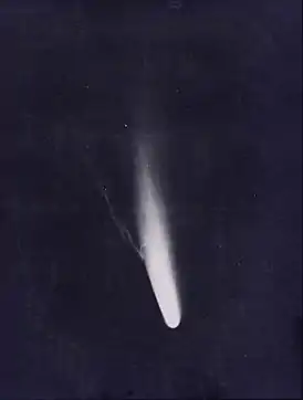 На трех красных снимках кометы, сделанных в Тюрингской государственной обсерватории в Таутенбурге с 5 по 8 мая, когда Земля находилась почти в плоскости орбиты кометы, были обнаружены две аномальные структуры в хвосте: радиальная структура и один короткий, обращенный к Солнцу острый пик, вероятно, образованный пылью кометы. Более поздний анализ этих наблюдений дал свидетельство об особенностях «структуры горловины» (NLS) в пылевом хвосте кометы, которая была теоретически получена только в 1977 году.[34]