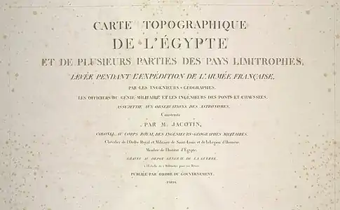 - Виктор Дюпюи, родившийся в коммуне Дорман (Верхняя Марна) 26 февраля 1777 года и умерший там же 23 января 1861 года, был французским минералогом. Выпускник Политехнической школы 1794 года, затем горный инженер. В январе 1799 года он сопровождал экспедицию, которая отправилась в Файюм. 19 марта 1799 года он покинул Каир и отправился в составе группы под руководством Жирара в Верхний Египет, чтобы изучить торговлю, сельское хозяйство, флору и фауну, искусство и историю, и в особенности, чтобы исследовать режим Нила, начиная с первого порога, и его ирригационную систему. Вернулся в Каир 19 марта 1799 года. Был частью небольшой группы, которая осталась в Каире с генералом Бельяром в начале 1801 года.