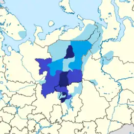 - Верхневычегодский — занимает бассейн р. Вычегды с притоками. По количеству говорящих на нём является самым крупным диалектом коми-зырянского языка[11].