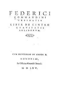 Из оригинальных трудов Командино известны «Описание часов» (1562) и «О центре тяжести твёрдых тел» (1565).