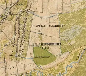 ЦАРСКАЯ СЛАВЯНКА (ПОКРОВСКАЯ И АНТРОПШИНО) — слобода, православных — 2243, мужчин — 1115, женщин — 1282, обоего пола — 2397. (1897 год)[12]