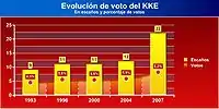 На местных выборах 2010 года наблюдался существенный рост количества голосов, поданных за КПГ — до 10,85 %. В Аттике и на Северных Эгейских островах этот показатель достиг 14,45 % и 15,74 % соответственно.