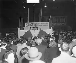 - 25 февраля 1941 года коммунисты совместно с профсоюзами организовали массовую забастовку, получившую название «Февральская стачка». Стачка против антисемитской политики нацистов[11][12] охватила все города Голландии и продолжалась в течение трех дней.