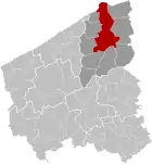 | Ингелмюнстер нид. и фр. Ingelmunster | ![]() | ![]() | 16,16 | 11 122 | 50°55′16″ с. ш. 3°15′11″ в. д. | Руселаре | ![]() | [62][63] |
