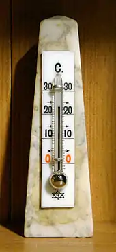 Термометр показывает комнатную температуру.