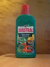 На данный момент существует множество специализированных удобрений для комнатных растений как универсального (подходят большой группе неприхотливых видов), так и узкого (определённый род, семейство или жизненная форма, например — суккуленты). Кроме промышленных средств подкормки растений, используются народные, среди которых: дрожжи, сахар, кофейная гуща, кожура цитрусовых и бананов, древесная и печная зола, луковая шелуха, вода из аквариума или после размораживания мяса[4]