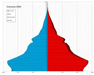 - По оценкам (средний прогноз) Департамента по экономическим и социальным вопросам ООН на 1 июля 2016 года население Комор составляло 807 118 человек, население Майотты — 246 496 человек, то есть суммарно 1 053 614 человек. (POP/1-1: Total population (both sexes combined) by major area, region and country, annually for 1950—2100 (Medium fertility, 2015—2100).xls Архивировано 25 мая 2017 года.)