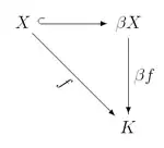 — это компактное хаусдорфово пространство вместе с непрерывным отображением из удовлетворяющее следующему универсальному свойству: любое непрерывное отображение в компактное хаусдорфово пространство можно однозначно продолжить до непрерывного отображения такого что следующая диаграмма коммутативна: