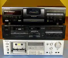 - В 1973 на рынок серьёзной кассетной техники вышла японская фирма Nakamichi, флагманские модели которой задали стандарт отрасли в целом и к 1980 году достигли теоретического потолка по измеримым параметрам и субъективному качеству звука. Разрыв в качестве звучания между механической грамзаписью и компакт-кассетой сократился до уровня, удовлетворяющего абсолютное большинство слушателей. Хотя цена такой техники была недоступна массовому потребителю, она задала направление для отрасли в целом, и уже к 1985—1988 годам производители массовых марок (Sony, Yamaha, Akai и т. п.) подошли вплотную к лидеру, во много раз понизив цены на качественные деки.