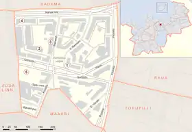 ![]() Микрорайон Компасси на карте Таллина (выделен красным цветом) | |