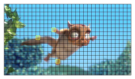 2. Кадр делится на блоки (например 16×16).