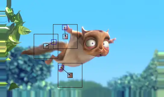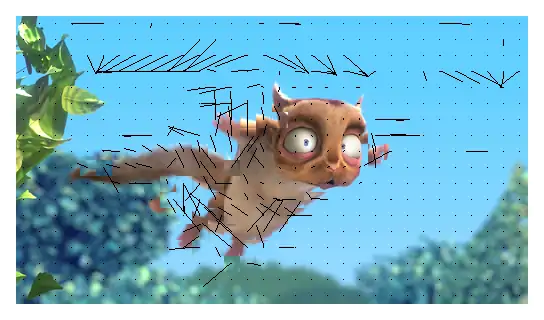 5. Таким образом, после завершения поиска мы получаем набор векторов, указывающий «движение» блоков изображения между кадрами. Эти векторы могут быть естественным образом использованы для создания изображения скомпенсированного кадра, который лучше приближает кадр, для которого производилась компенсация движения.