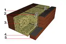 Композитные гибкие связи используются в строительстве для эффективного и надежного крепления внутренней стены с облицовочным слоем как в системе трехслойных стен (с использованием теплоизоляционного материала) (рис. 1.), так и при возведении однородных стеновых конструкций для усиления кладки.