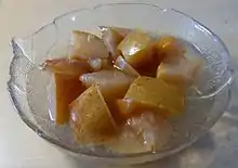 Компо́т (от фр. compote через нем. Kompott[1]) — охлаждённое сладкое блюдо из свежих, консервированных или сушёных или быстрозамороженных фруктов в различных сочетаниях или из одного вида[2]. Разновидностью компота является маседуан[3].