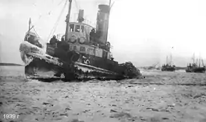 ![]() «Комсомолец» завершает навигацию в порту Нарьян-Мар. Фото А. А. Фёдорова, 1939 или 1940 год |