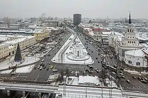 ![]() Вид на площадь с гостиницы «Ленинградская» | |