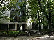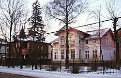 - Вилла (№ 21). . Построенная в 1900 году вилла хорошо сохранилась. На среднем ризалите находятся пилястры с коринфскими колоннами и ионическими капителями, три полукруглые арки образуют завершение. Плоский фахверковый фронтон указывает на романтический стиль, размещённые по сторонам окна занимают не только арки посередине, но и закруглённые переходы к обрамлениям указывают на «югендстиль»[1]. Сейчас в вилле размещается детская музыкальная школа Д. Д. Шостаковича.