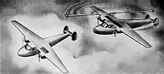 Самым первым детально разработанным проектом конвертоплана являлся P.1003 фирмы «Вессерфлюг», разработанный в Германии в 1938 году конструкторами Рорбахом и Симоном. Согласно проекту предполагалось создать двукрылый конвертоплан с поворотным крылом (точнее, должны были поворачиваться только концы крыла при неподвижной середине). Однако в связи с начавшейся на следующий год войной проект так и не был осуществлён[1]. Второй детально разработанный проект конвертоплана в той же Германии не был осуществлён уже по причине окончания войны. Так как фирмы Фокке и Ахгелис намеревались построить свой Fa-269 в качестве вундерваффе. Согласно этому проекту конвертоплан должен был иметь «толкающие (а не тянущие, как в классических проектах конвертоплана) трёхлопастные винты, которые благодаря очень высокому шасси могли бы поворачиваться вниз при взлёте. Что любопытно, предполагалось наличие только одного (но очень мощного) двигателя, который должен был располагаться в фюзеляже, а внутри каждого крыла должна была проходить трансмиссия, ведущая к поворотному винту».[1]