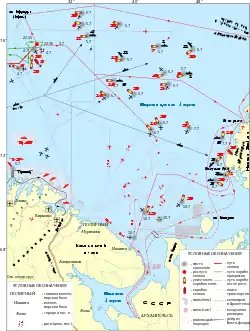 По договору, в месяц должно было перевозиться порядка 500 тыс. тонн грузов. Из них Советский Союз мог перевезти только 1/5. К тому же Северный флот СССР, состоявший на начало войны из 51 корабля, включая 8 эсминцев и 15 подлодок[прим. 1], имел ограниченные возможности по охране этих судов[2]. Ответственность за организацию конвоев и их непосредственное охранение на всём протяжении маршрута из Исландии в СССР и обратно возлагалась на британское Адмиралтейство. Между британским и советским Северным флотом были поделены зоны ответственности, граница которых проходила в Баренцевом море по меридиану 20° восточной долготы. В своей зоне ответственности флот СССР должен был вести разведку кромки арктического льда, осуществлять блокирование своими подводными лодками выхода надводных кораблей, разведку аэродромов, поиск и уничтожение подводных лодок противника и обеспечивать встречу конвоя[3].