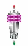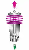 Как только температура конденсата приближается к температуре насыщения, конденсатоотводчик уже почти закрыт. Давление в пространстве между плунжером и седлом снижается по мере уменьшения объема пара вторичного вскипания и плунжер плотно прижимается к седлу. Термостатическая и пружинная характеристики стопки биметаллические пластин сбалансированы таким образом, что температура открытия и закрытия всегда на несколько градусов ниже температуры насыщения.