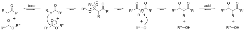 Классический пример конденсации Клайзена — образование ацетоуксусного эфира при конденсации двух молекул этилацетата в присутствии этилата натрия.