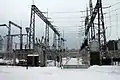 Генераторы ГЭС выдают электроэнергию на напряжении 6,3 кВ, которое преобразуется на напряжение 110 кВ трансформатором ТДГ мощностью 31,5 МВА. Выдача электроэнергии в энергосистему происходит с открытого распределительного устройства (ОРУ) по трём линиям электропередачи 110 кВ[5][23]: