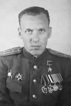 Указом Президиума Верховного Совета СССР «О присвоении звания Героя Советского Союза начальствующему и рядовому составу Красной Армии» от 5 мая 1942 года за «образцовое выполнение боевых заданий командования на фронте борьбы с немецкими захватчиками и проявленные при этом отвагу и геройство» удостоен высокого звания Героя Советского Союза с вручением ордена Ленина и медали «Золотая Звезда» за номером 567[2].