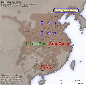 - Гунсунь Цзань, контролирующий провинцию Ючжоу (современные Пекин, Тяньцзинь и Ляонин)