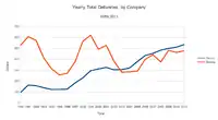 | Компания/десятилетие | 2010-е | 2000-е | 1990-е |
