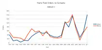 За последние 12 лет (2005—2016) Airbus получил 11830 заказов и поставил 6456 самолётов, в то время как Boeing получил 11024 заказа и поставил 6406 самолётов. Конкуренция между компаниями очень напряжённая. Оба конкурента постоянно обвиняют друг друга в получении несправедливых преимуществ и субсидий от своих правительств.