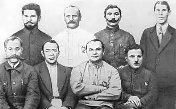 сидят Каменев С. С., Гусев С. И., Егоров А. И., Ворошилов К. Е., стоят Лебедев П. П., Петин Н. Н., Будённый С. М., Шапошников Б. М..